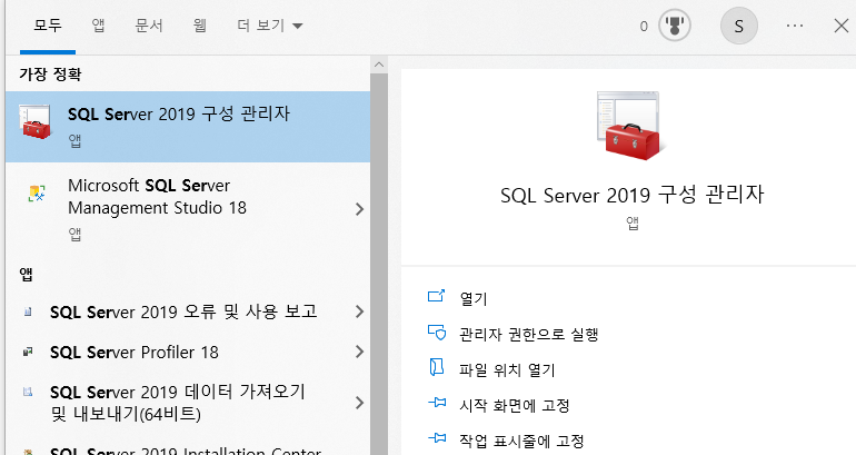 (자신의 SQL 버전이 몇년도인지 모를때는 윈도우 검색창에 SQL Server 검색하면 나옵니다)