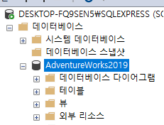 아래와 같이 데이터베이스가 생겼네요. 주로 쿼리 공부용도로 사용하는 AdventureWorks 데이터베이스 다운/적용 방법 알아봤습니다.
